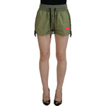 Dsquared² Green Cotton Mid Waist Drawstring Tapered Shorts