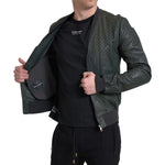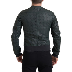 Dolce & Gabbana Green Perforated Leather Bomber Jacket