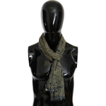 GF Ferre Green Wool Viscose Foulard Patterned Branded Scarf