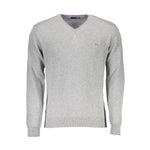 sweater, "v" neckline, contrasting details, embroidery, logo