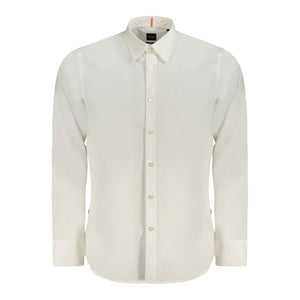 Elevate your wardrobe with the impeccable craftsmanship of a Hugo Boss long sleeve shirt. Tailored for a modern silhouette, this regular fit white staple is a perfect blend of sophistication and ease. Adorned with a subtle logo embroidery, it features an Italian collar and elegant 1-button cuffs, ready to make a statement in any setting. Never compromising on quality, it’s a piece made to last, designed in Bangladesh.