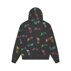 black multicoloured graphic print hooded design ribbed cuffs kangaroo pocket Running Dog Popover hoodie