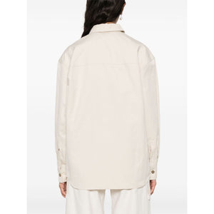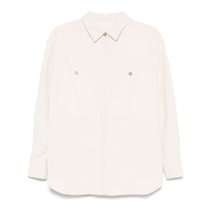 beige concealed front button fastening two chest patch pockets buttoned cuffs classic collar Nolani cotton t-shirt Size and Fit - This piece fits true to size. We recommend you get your regular size. Model is 1,75m / 5ft 8in wearing size 36 (FR)