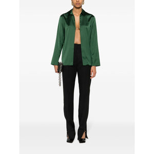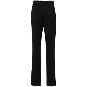 black virgin wool high waist D-ring findings two diagonal pockets to the sides pressed crease side slits two rear welt pockets partial lining concealed front button, hook and zip fastening Le Pantalon Tibau Size and Fit - This piece fits true to size. We recommend you get your regular size. Model is 1,75m / 5ft 8in wearing size 36 (FR)