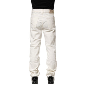 Jeckerson White Cotton Stretch Straight Fit Men Denim Jeans