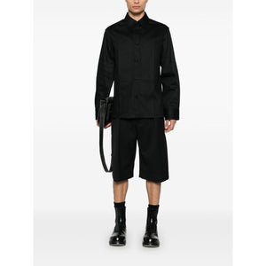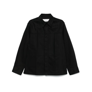 black cotton denim front press-stud fastening classic collar long sleeves press-stud fastening cuffs two chest patch pockets short side slits straight hem Denim cotton shirt Size and Fit - This piece fits true to size. We recommend you get your regular size. Model is 1,84m / 6ft 1in wearing size 48 (IT)