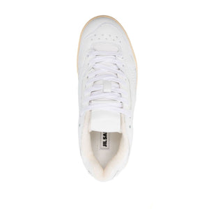 debossed-logo low-top sneakers from JIL SANDER featuring white, calf leather, perforated detailing, round toe, front lace-up fastening, branded insole and flat rubber sole. Basket low-top leather sneakers Size and Fit - Heel 1,2 in / 3 cm; Platform 0,8 in / 2 cm