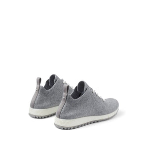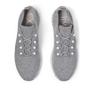 grey lurex detailing rubber sole pull-tab at the heel front lace-up fastening faux-pearl detailing round toe branded insole Veles pearl embellished sneakers