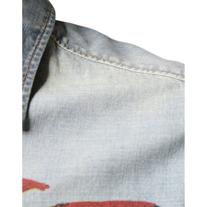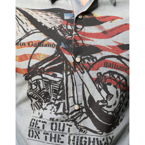 John Galliano Light Blue Printed Cotton Denim Long Sleeves Shirt
