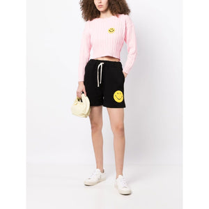 smiley-face print cotton shorts from JOSHUA SANDERS featuring black, cotton, smiley face print, elasticated drawstring waistband, two side inset pockets and rear patch pocket. Smiley logo cotton shorts Size and Fit - This piece fits true to size. We recommend you get your regular size. Model is 1,75m / 5ft 8in wearing size S