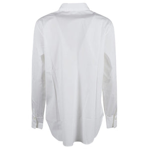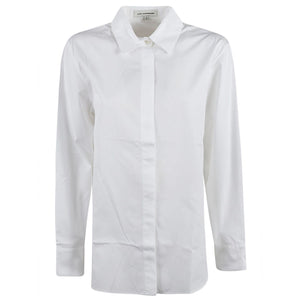 White shirt, front buttons closure, wrist closure closure. Button-down cotton shirt Size and Fit - This piece fits true to size. We recommend you get your regular size. Model is 1,75m / 5ft 8in wearing size S