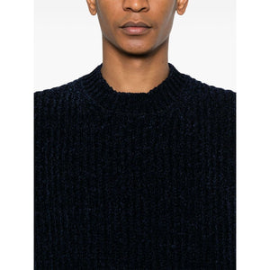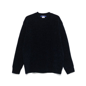 navy blue ribbed knit crew neck long sleeves straight hem Wool blend jumper Size and Fit - This piece fits true to size. We recommend you get your regular size. Model is 1,84m / 6ft 1in wearing size 2 (NUM)