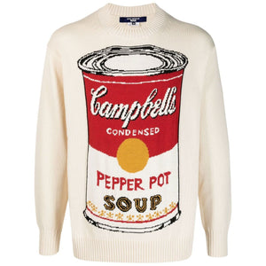 x Andy Warhol intarsia-knit jumper from Junya Watanabe featuring off-white, cotton blend, patterned intarsia knit, ribbed trim, crew neck, long sleeves and straight hem. Printed Cotton sweater Size and Fit - This piece fits true to size. We recommend you get your regular size. Model is 1,84m / 6ft 1in wearing size M