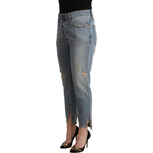 CYCLE Light Blue Distressed Mid Waist Cropped Denim Jeans