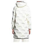 Elevate your winter wardrobe with the epitome of elegance and warmth. This long down jacket from Love Moschino features a whimsical white quilted exterior adorned with signature heart motifs. Crafted for comfort and style, it comes complete with a cozy hood, a secure zip front, and long sleeves to protect you from the chill. The interior is padded for additional warmth, and functional zipped pockets add practicality to this single-breasted design. Contrasting black stitching details give it a final touch of sophistication.