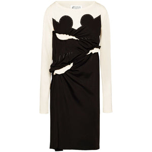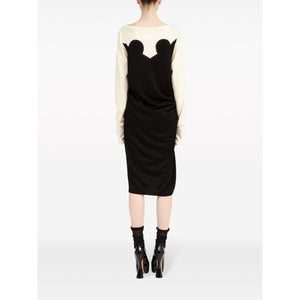 black/off-white jersey texture knitted panels contrast stitching ruched detailing signature numbers motif round neck long sleeves straight hem mid-length Cotton blend midi dress Size and Fit - This piece fits true to size. We recommend you get your regular size. Model is 1,75m / 5ft 8in wearing size 40 (IT)