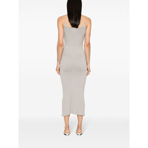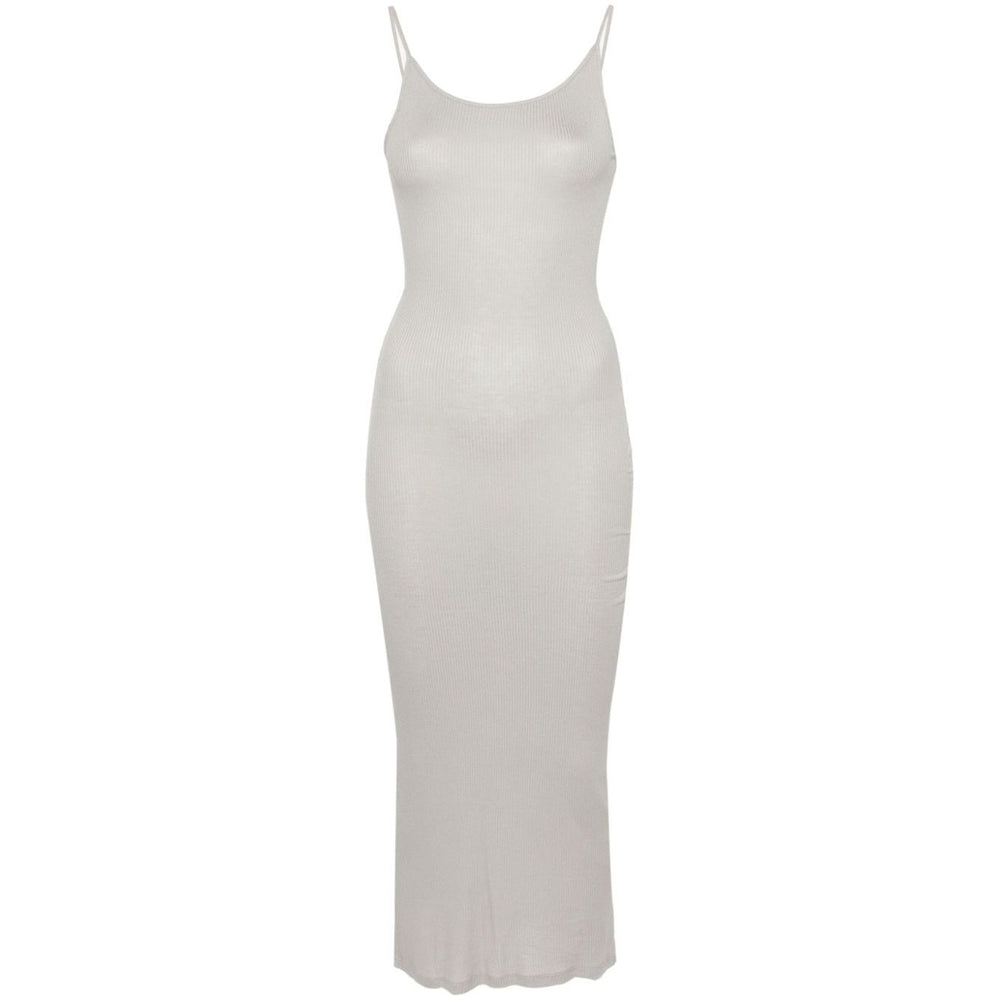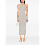 grey stretch-design ribbed knit scoop neck spaghetti straps sleeveless ankle-length straight hem unlined Ribbed viscose long dress Size and Fit - This piece fits true to size. We recommend you get your regular size. Model is 1,75m / 5ft 8in wearing size 1 (NUM)