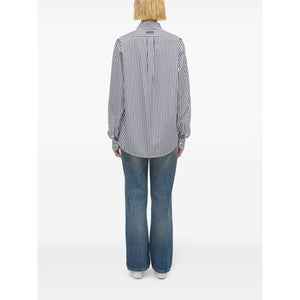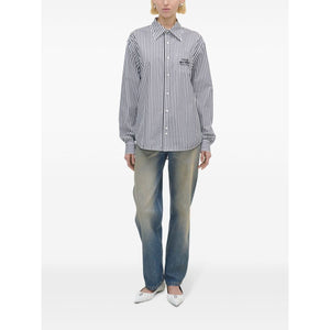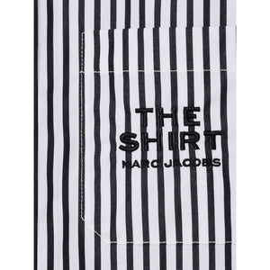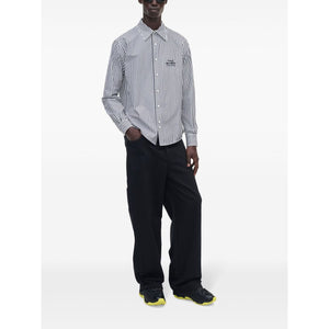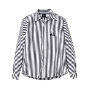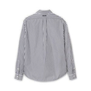 black/white cotton vertical stripe pattern front button fastening mother-of-pearl buttons classic collar embroidered logo chest patch pocket long sleeves curved hem Striped cotton shirt Size and Fit - This piece fits true to size. We recommend you get your regular size. Model is 1,75m / 5ft 8in wearing size S