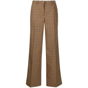 Moon Diamant straight-leg trousers from MARINE SERRE featuring light brown, recycled polyester blend, jacquard, high-waisted, belt loops, concealed front fastening, straight leg and Moon Diamant pattern. This item is made from at least 50% recycled or upcycled materials. For recycled synthetic clothing products, we highly recommend using a microfibre-catching washing bag to ensure that no microplastics that can pollute water are released in the process.. Learn more about what makes a product Conscious on our Conscious Criteria page. Moon Diamant tailoring trousers Size and Fit - This piece fits true to size. We recommend you get your regular size. Model is 1,75m / 5ft 8in wearing size 36 (FR)