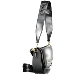 Step into the world of chic sophistication with this Mario Valentino handbag — a piece that merges function with high fashion flawlessly. Accentuating any outfit, it features a versatile removable shoulder handle and an adjustable strap for a seamless transition from day to night. Organize your essentials in style with two internal pockets and keep them secure with the sleek automatic closure. Proudly crafted with eco-conscious recycled polyethylene, this jet-black accessory isn’t just a statement—it’s a statement with a conscience.