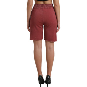 Dolce & Gabbana Maroon Cotton High Waist Sweatshorts Shorts