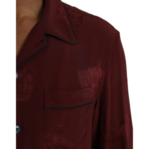 Dolce & Gabbana Maroon Crown Jacquard Silk Long Sleeve Shirt