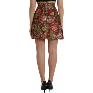 Dolce & Gabbana Maroon Floral Jacquard A-line Mini Skirt