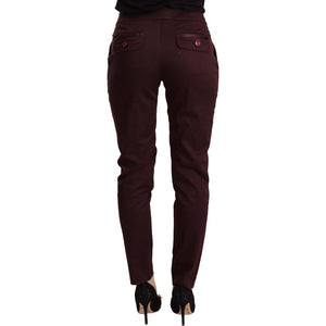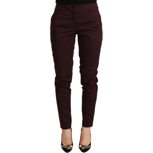 Just Cavalli Maroon Mid Waist Skinny Women Trouser Pants