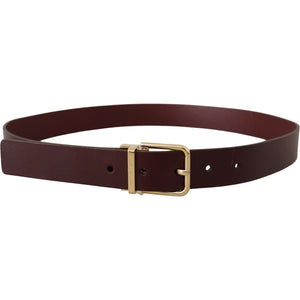 Dolce & Gabbana Maroon Vitello Leather Gold Metal Buckle Belt