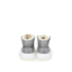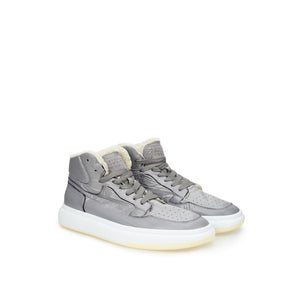 High Sneakers with Inner Fur MM6 Maison Margiela in grey technical fabric, lace-up front with tone-on-tone laces, slightly squared toe with small holes, contrasting white sole with hammered work. Engraved numbers on the back of the sole, iconic contrast stitching on the back of the shoe, fur on the inside of the entire shoe. Sole height: 4 cm-Sku inside:23NOV56