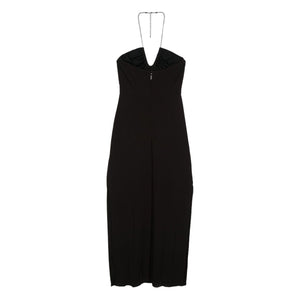 black stretch-jersey ruched detailing halterneck V-neck concealed rear zip fastening lobster claw fastening strapless straight hem This item is made from at least 50% recycled or upcycled materials. For recycled synthetic clothing products, we highly recommend using a microfibre-catching washing bag to ensure that no microplastics that can pollute water are released in the process. Learn more about what makes a product Conscious on our Conscious Criteria page Offshoulder mini dress Size and Fit - This piece fits true to size. We recommend you get your regular size. Model is 1,75m / 5ft 8in wearing size S