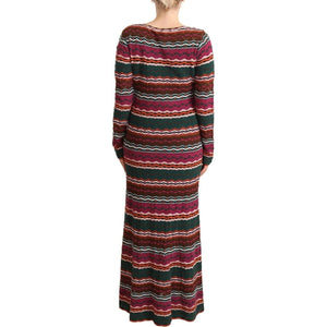 Missoni Multicolor Stripe Wool Knitted Maxi Sheath Dress