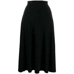 Black flared midi skirt from Norma Kamali featuring a high waist. Flared jersey skirt