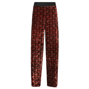 Pantalone rosso, gamba larga, vita elasticizzata. Velvet trousers Size and Fit - This piece fits true to size. We recommend you get your regular size. Model is 1,75m / 5ft 8in wearing size S