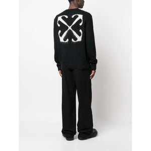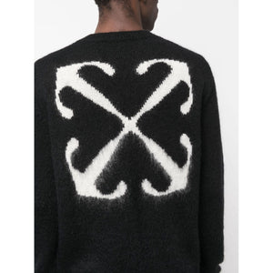 Arrow intarsia crew-neck jumper from OFF-WHITE featuring black/white, mohair-wool blend, ribbed-knit edge, signature Arrows motif, crew neck, long sleeves and straight hem. Wool blend sweater Size and Fit - This piece fits true to size. We recommend you get your regular size. Model is 1,84m / 6ft 1in wearing size M