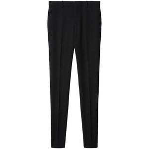 Wave Tag Dry Wo skinny trousers from OFF-WHITE featuring black, wool, skinny cut, concealed front fastening, belt loops, pressed crease, two rear welt pockets, logo patch to the rear and flared hem. Wool skinny trousers Size and Fit - This piece fits true to size. We recommend you get your regular size. Model is 1,84m / 6ft 1in wearing size 48 (IT)