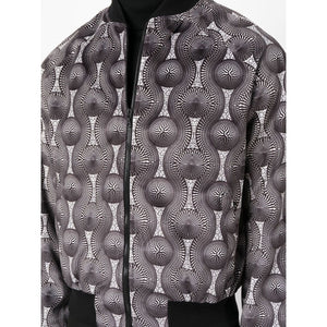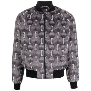 geometric-print silk bomber jacket from OZWALD BOATENG featuring black/white, geometric-pattern print, ribbed band collar, front zip fastening, long raglan sleeves, two side welt pockets and ribbed edge. Printed velvet bomber jacket Size and Fit - This piece fits true to size. We recommend you get your regular size. Model is 1,84m / 6ft 1in wearing size 38 (UK)