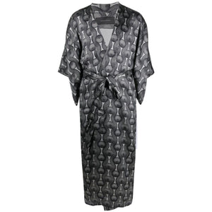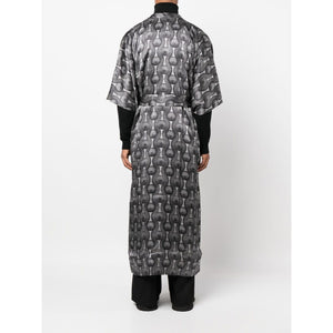 geometric-print tie-waist jacket from OZWALD BOATENG featuring silk, black/white, geometric-pattern print, open front, short sleeves, self-tie fastening, belted waist and ankle-length. When buying this unisex item, keep in mind that it is graded in standard men's sizing.. Printed silk long kimono Size and Fit - This piece fits true to size. We recommend you get your regular size. Model is 1,84m / 6ft 1in wearing size M