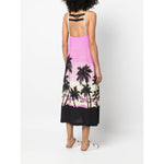 sunset-print midi dress from PALM ANGELS featuring black, light purple, palm tree print, strap detailing, V-neck, shift style and calf-length. Sunset print midi dress Size and Fit - This piece fits true to size. We recommend you get your regular size. Model is 1,75m / 5ft 8in wearing size 40 (IT)