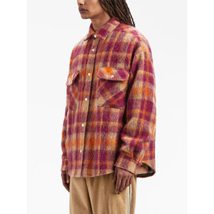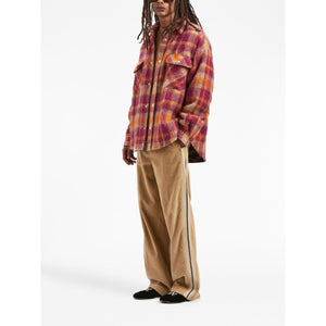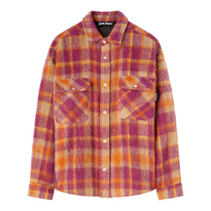 plaid-print shirt jacket from PALM ANGELS featuring orange, multicolour, virgin wool blend, logo patch at the chest, plaid check print, classic collar, front press-stud fastening, chest flap pockets, long sleeves, press-stud fastening cuffs and curved hem. Checked wool overshirt Size and Fit - This piece fits true to size. We recommend you get your regular size. Model is 1,84m / 6ft 1in wearing size 48 (IT)