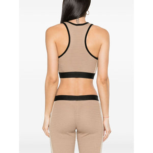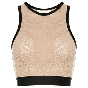 beige/black cotton knitted construction crochet knit logo-tape detailing crew neck sleeveless racerback side stripe detailing elasticated hem straight cropped hem Knitted cropped top Size and Fit - This piece fits true to size. We recommend you get your regular size. Model is 1,75m / 5ft 8in wearing size S