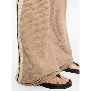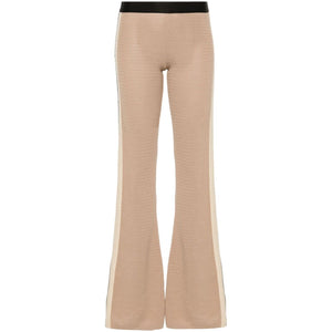 beige/black cotton knitted construction crochet knit elasticated logo waistband side stripe detailing flared design Logo tape knitted trousers Size and Fit - This piece fits true to size. We recommend you get your regular size. Model is 1,75m / 5ft 8in wearing size S