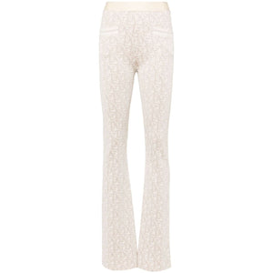 light beige, gold-tone knitted construction metallic threading monogram jacquard striped elasticated logo waistband two front welt pockets flared unlined pull-on style Monogram jacquard knit trousers Size and Fit - This piece fits true to size. We recommend you get your regular size. Model is 1,75m / 5ft 8in wearing size S