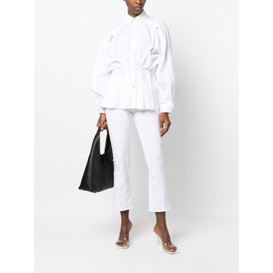 gathered-waist cotton shirt from Palmer//Harding featuring white, cotton, gathered detailing, classic collar, front button fastening, long sleeves, buttoned cuffs, pleat detailing and straight hem. Cotton shirt Size and Fit - This piece fits true to size. We recommend you get your regular size. Model is 1,75m / 5ft 8in wearing size 8 (UK)