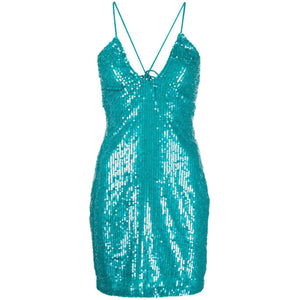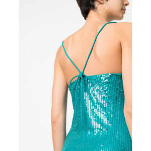 sequined mini dress from P.A.R.O.S.H. featuring aqua blue, sequin design, plunging V-neck, adjustable spaghetti straps and thigh-length. Sequined mini dress Size and Fit - This piece fits true to size. We recommend you get your regular size. Model is 1,75m / 5ft 8in wearing size S