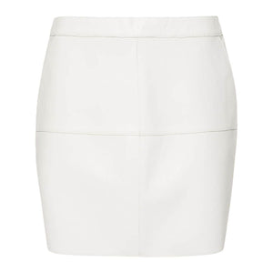 white leather panelled design mid-rise concealed rear hook and zip fastening two diagonal pockets to the sides straight hem thigh-length Leather mini skirt Size and Fit - This piece fits true to size. We recommend you get your regular size. Model is 1,75m / 5ft 8in wearing size S