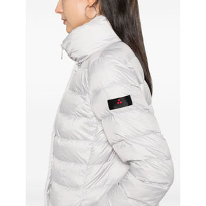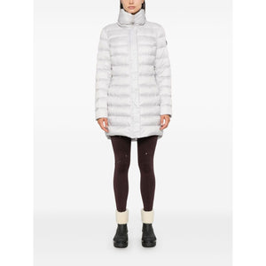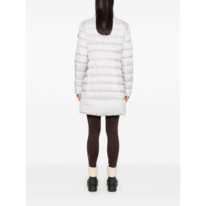 ash grey goose down padded design front press-stud and zip fastening high neck two side inset pockets long sleeves appliqué logo internal patch pockets straight hem Nylon midi down jacket Size and Fit - This piece fits true to size. We recommend you get your regular size. Model is 1,75m / 5ft 8in wearing size 40 (IT)