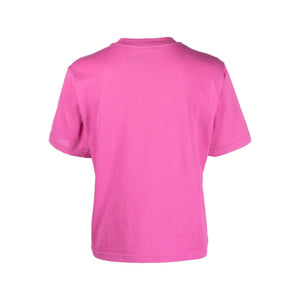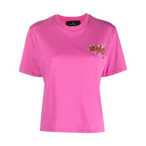 chest graffiti-print T-shirt from PEUTEREY featuring graffiti print, peony pink, cotton, round neck, short sleeves and straight hem. Logo cotton t-shirt