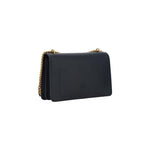 Pinko’s Love leather Shoulder Bag is an elegant and practical accessory. It features a front closure with a magnetic flap, offering ease of use and security. The adjustable, sliding chain shoulder strap adds a sophisticated and versatile touch. On the front, the iconic Love Birds embossed applied buckle, the brand’s signature symbol, stands out. Inside, the bag features two compartments, an interior zippered pocket and a flat card pocket for optimal organization. On the back, the brand’s iconic monogram is tone-on-tone embroidered, completing the design with a discreet luxury accent.