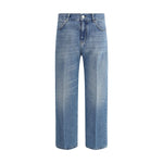 Pinko’s Lovely cotton Jeans feature a wide-leg, five-pocket design with a mid-rise waist and front button-and-zip closure. Belt loops at the waistband allow the fit to be adjusted. They also feature slits on the inner side panels, an original detail that adds a touch of style. The iconic leather patch with the brand’s signature pressure print on the back gives the garment a distinctive and refined touch.